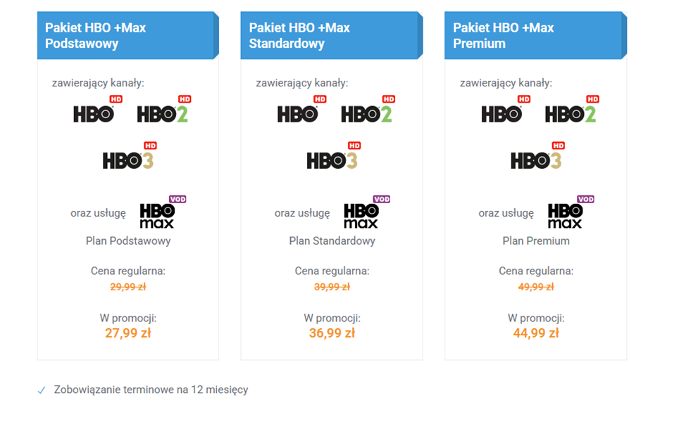 Pakiet HBO Standardowy w cenie 36,99 zł/m-c na 12 miesięcy / 39,99 zł bez zobowiązania